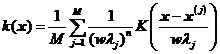 自適應(yīng)寬核抽樣密度函數(shù)估計(jì)是在固定寬核密度函數(shù)的基礎(chǔ)上,通過修正窗口寬度參數(shù)為而得到的,其形式如式所示。