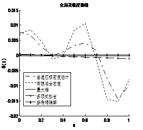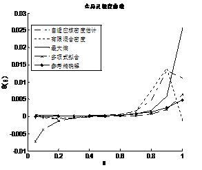 對于此工程算例,利用900個失效樣本點擬合概率密度函數(shù)和全局靈敏度。由8.7可以看出基于有限混合密度和自適應(yīng)核密度估計方法得到的失效概率函數(shù)曲線波動較大,其他兩種方法雖也有較大誤差,但與參考精確解的曲線的趨勢較為貼近。由8.8可以看出基于最大熵密度估計法與正交多項式擬合概率密度法所得的全局靈敏度曲線與參考精確解的曲線相差不大,而基于有限混合密度法與自適應(yīng)核密度估計法得到的全局靈敏度仍然波動較大。