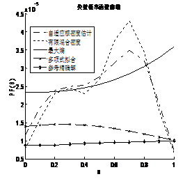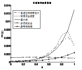 算例8.1非線性極限狀態(tài)函數(shù)為,其基本隨機變量均為正態(tài)分布且相互獨立,。的分布取為均值為0.5、標(biāo)準(zhǔn)差為0.2的正態(tài)分布。本例運用Monte Carlo抽樣106的樣本點,得到4081個失效樣本來估計密度函數(shù)。以下給出四種擬合方法得到的失效概率函數(shù)和全局靈敏度的曲線圖。
